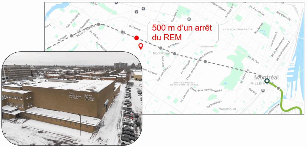 - REM : station Cote de Liesse, à environ 5 minutes à pied.